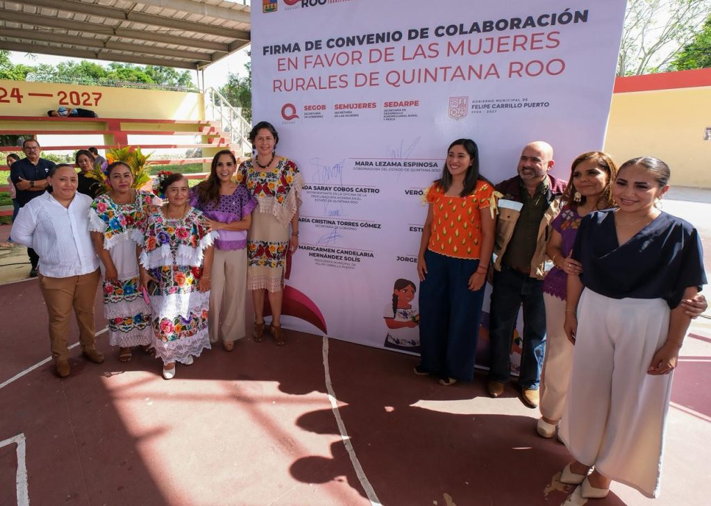 En un trabajo colaborativo entre la Procuraduría Agraria y la Secretaría de las Mujeres, la gobernadora Mara Lezama Espinosa, firmó el Convenio de Colaboración a Favor de las Mujeres Rurales de Quintana Roo, para impulsar políticas públicas con perspectiva de género para las mujeres del campo, conseguir que participen en la toma de decisiones dentro de sus ejidos y garantizar la prosperidad compartida.
