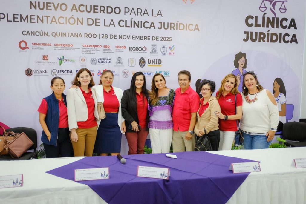 Cancún.- En un acto de justicia, empatía y de amor por las mujeres de Quintana Roo, la gobernadora Mara Lezama Espinosa, encabezó la firma del Nuevo Acuerdo por el Bienestar y Desarrollo para la Implementación de la Clínica Jurídica de las Mujeres, la primera en su tipo impulsada por la Secretaría de las Mujeres.